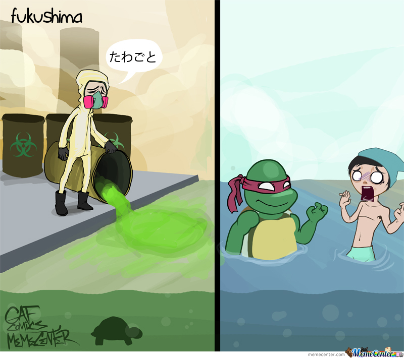O katastrofie w elektrowni jądrowej Fukushima Dai-Ichii pisałem niedawno [LINK], obiecując szersze omówienie memów związanych z tym wydarzeniem. Wyszukałem zatem ok. 70 najbardziej reprezentatywnych, z których następnie przeprowadziłem dalszą selekcję, głównie pod względem typowości oraz oryginalności. Można je podzielić na kilka grup. Pierwsza to kopie "Meanwhile in Chernobyl", powielające wyświechtane klisze o mutacjach popromiennych. Zastosowano jednak inny dobór zwierząt:
